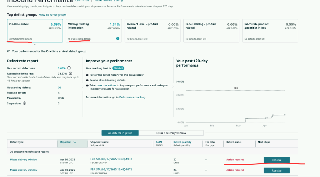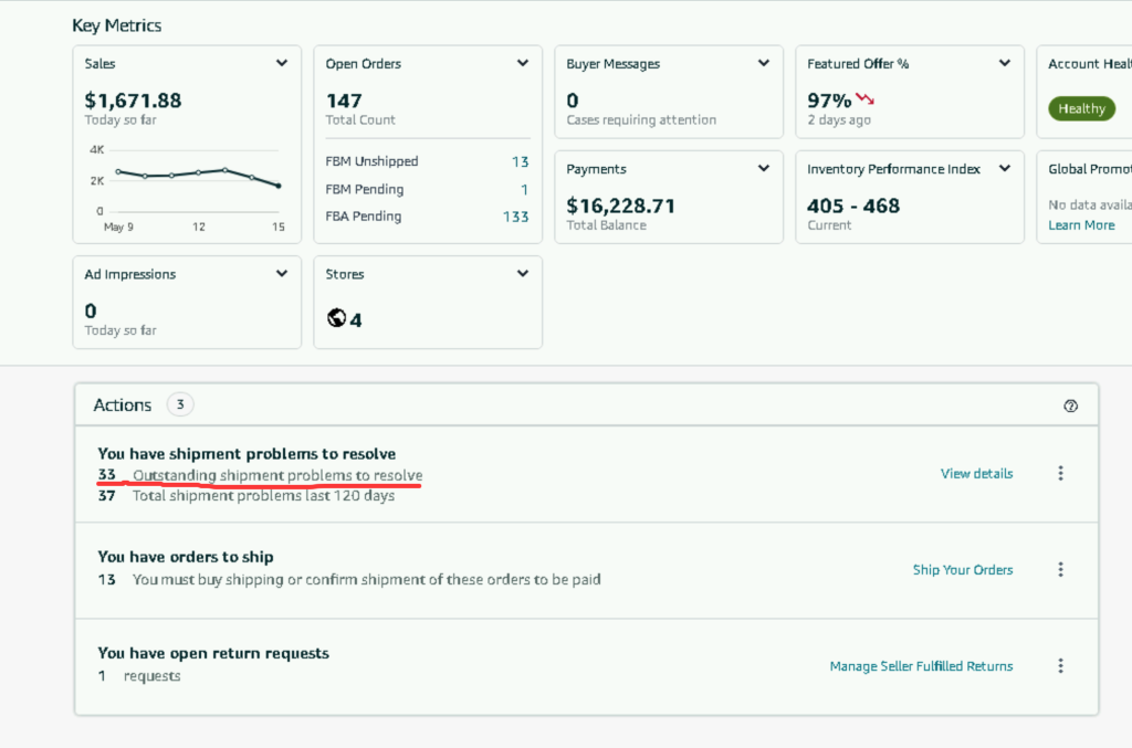 进入亚马逊后台,如果发现有存在 xx OutStanding shipment problems to resolve。则表示存在需要处理的入库缺陷。如下图红线所示。