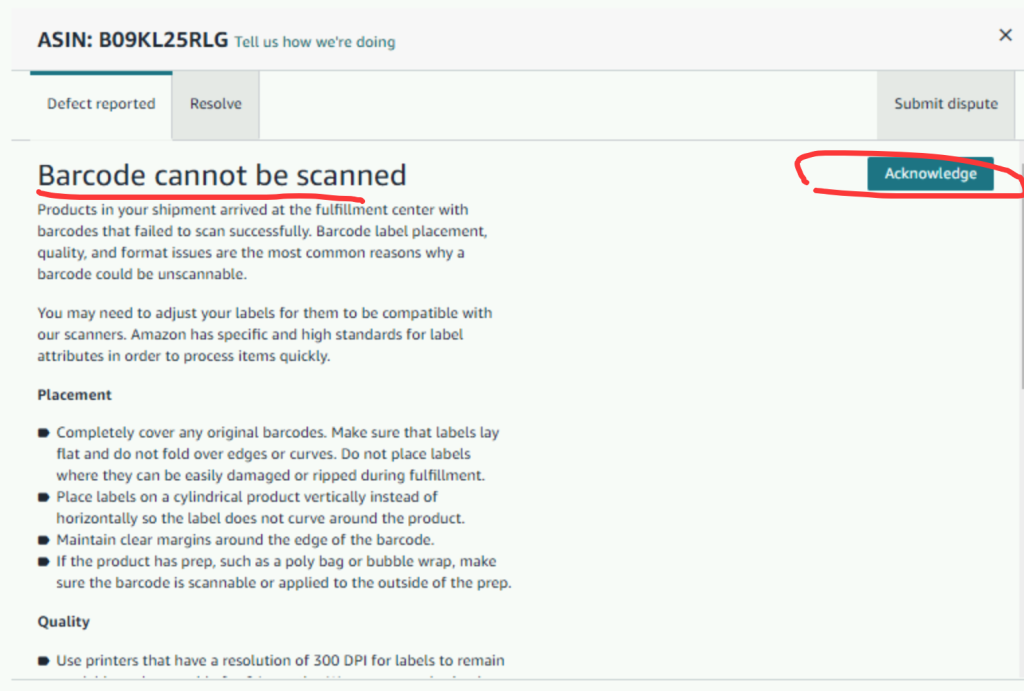 问题3:FBA产品标签错误:Incorrect label – product related,主要是 FBA FNSKU 标签无法扫描 (Barcode cannot be scanned)