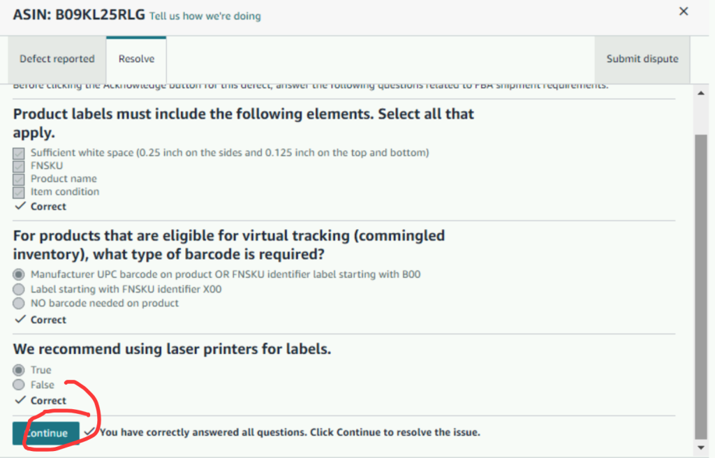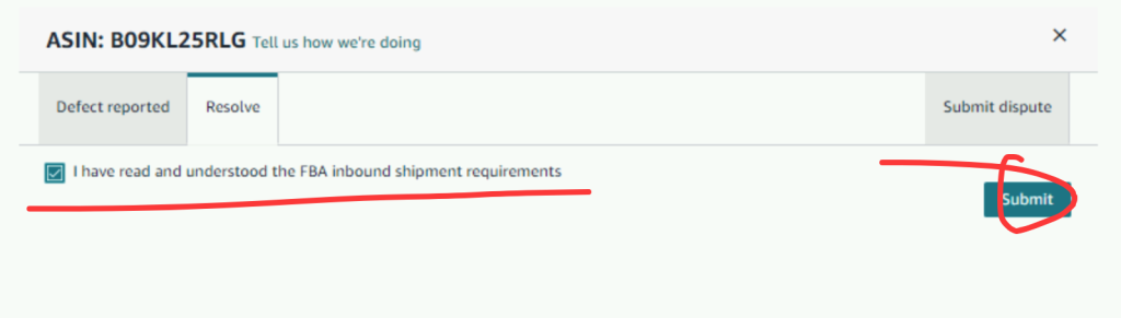 点击 Acknowledge, 之后勾选 “I have read and understood the FBA inbound shipment requirements”, 然后点击”Submit” 即可